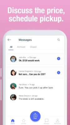 Instant messages through the app let you agree on the price fast, discuss a meeting place and delivery options. After that, you are all set! No middleman, no extra fees (no fees at all), no hassle.