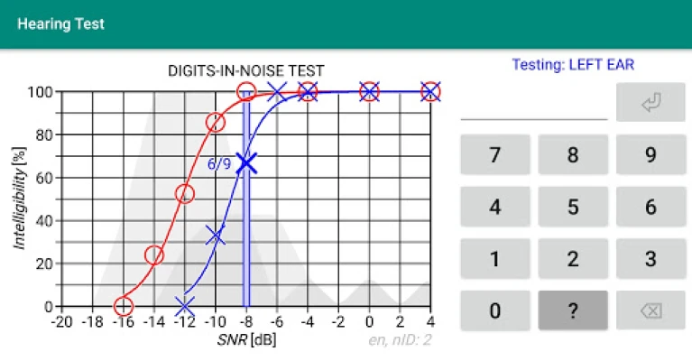 The app provides two basic hearing test: pure-tone audiometry and the speech intelligibility test (the digits-in-noise).