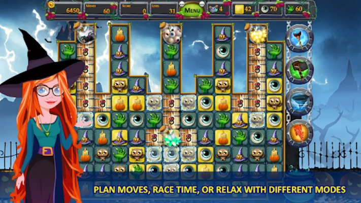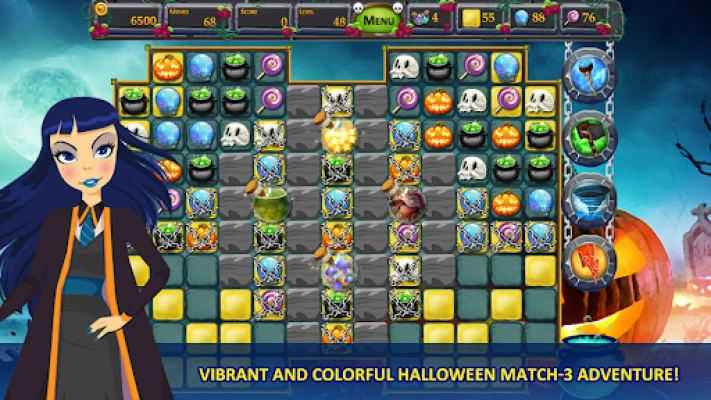 - Vibrant and colorful Halloween match-3 adventure!