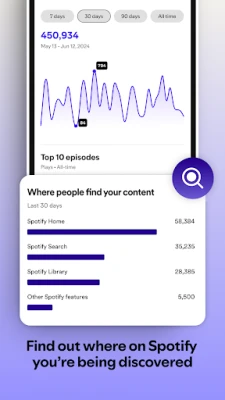 Fans come to Spotify to discover new podcasts. Tap into this audience by using Spotify for Creators to upload your episodes, connect with your fans, and check out your Spotify podcast analytics. With Spotify for Creators, podcast and video creators can: